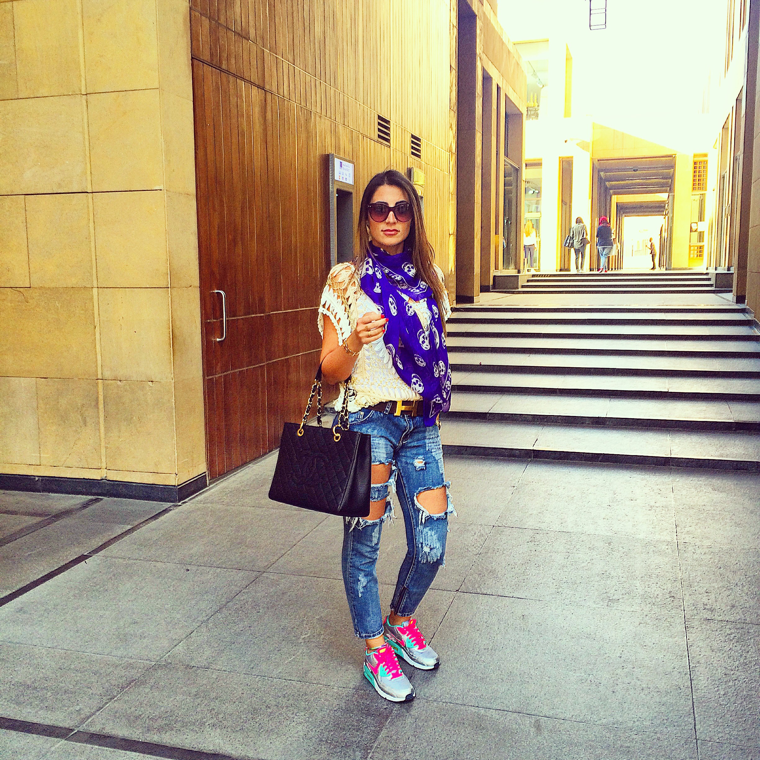 Both are styled with my favorite Nike Airmax, an Alexander McQueen scarf, a black Chanel shopping tote in caviar and a brown Hermès belt in gold H.