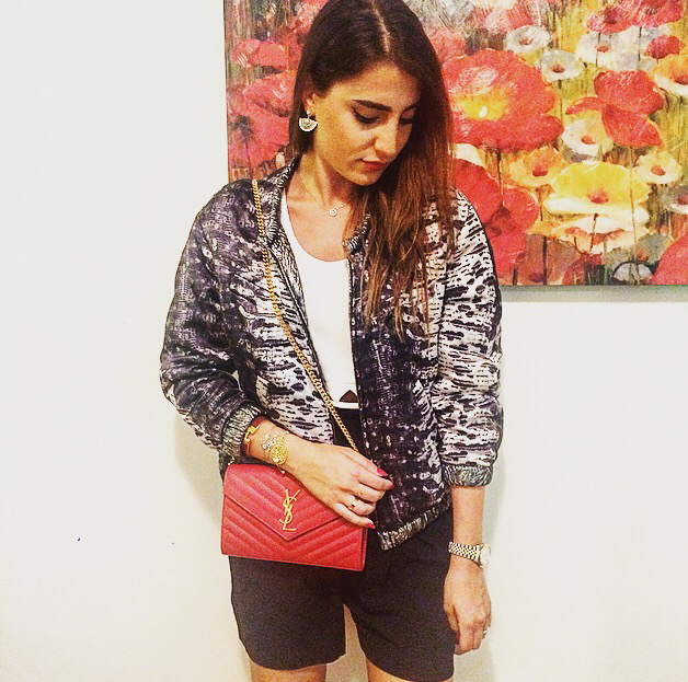 The YSL Red Cassandre flap bag, crafted from chevron quilted leather, compliments the neutral colors of the outfit. What I love about it is that it could also be worn as a shoulder bag as it comes with a long gold chain link. I also recently picked out these white pearl and turquoise earrings from POGGI Paris. I dressed the whole outfit with the Isabel Marant x H&M reversible jacket which I find absolutely essential and practical.