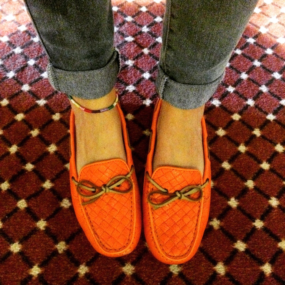Ootd Overall Thursday Posted by The Wardrobe Muse on June 6, 2015 Overalls are back in style today and they are oh-so-very comfortable. I am wearing a skinny leg washed overall denim from La Maison Simons. I styled them with an orange accent top from Rachel Roy and Bottega Veneta loafers in orange as well. Share this:Tweet Click to email a link to a friend (Opens in new window) Email Like Loading...