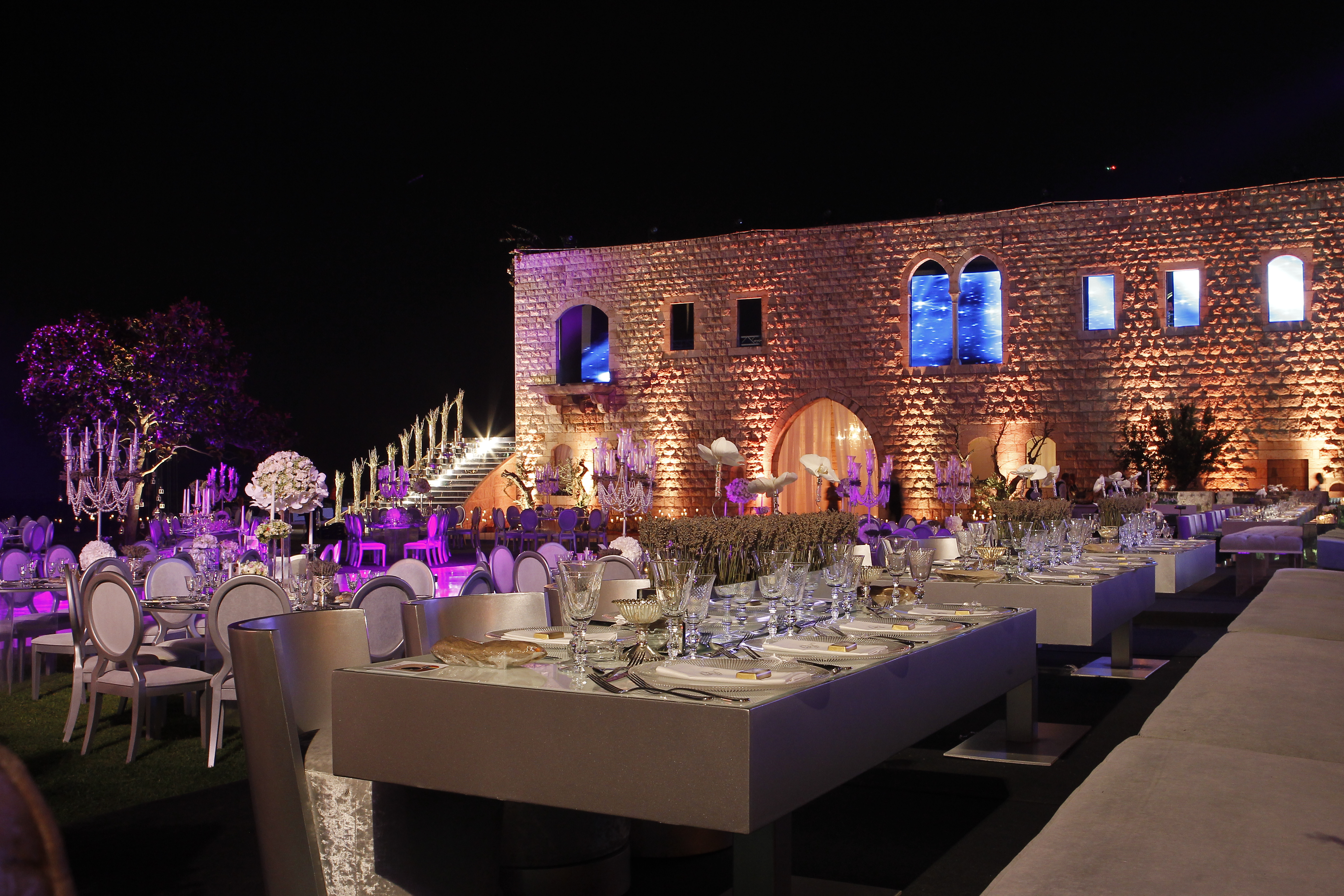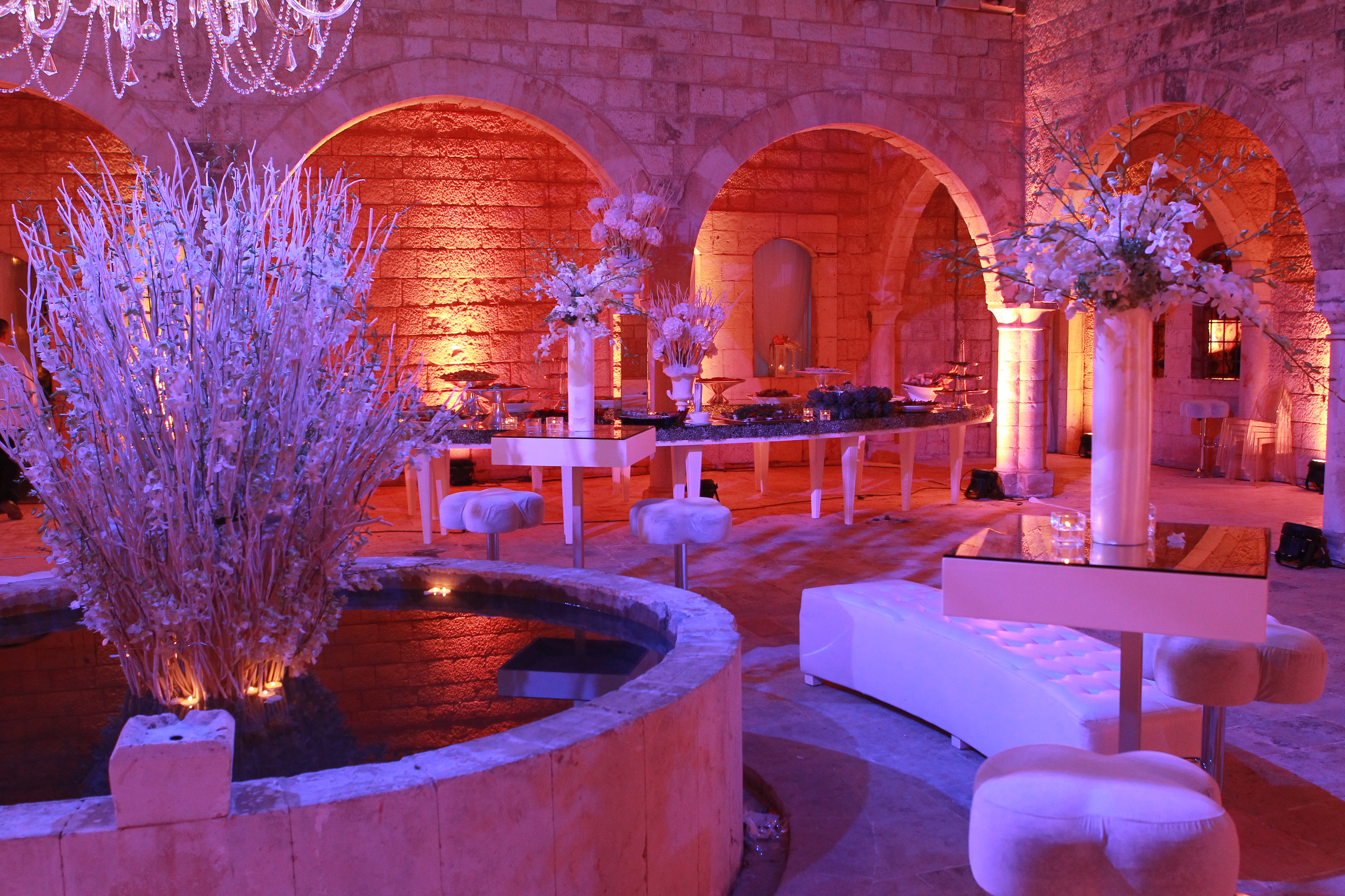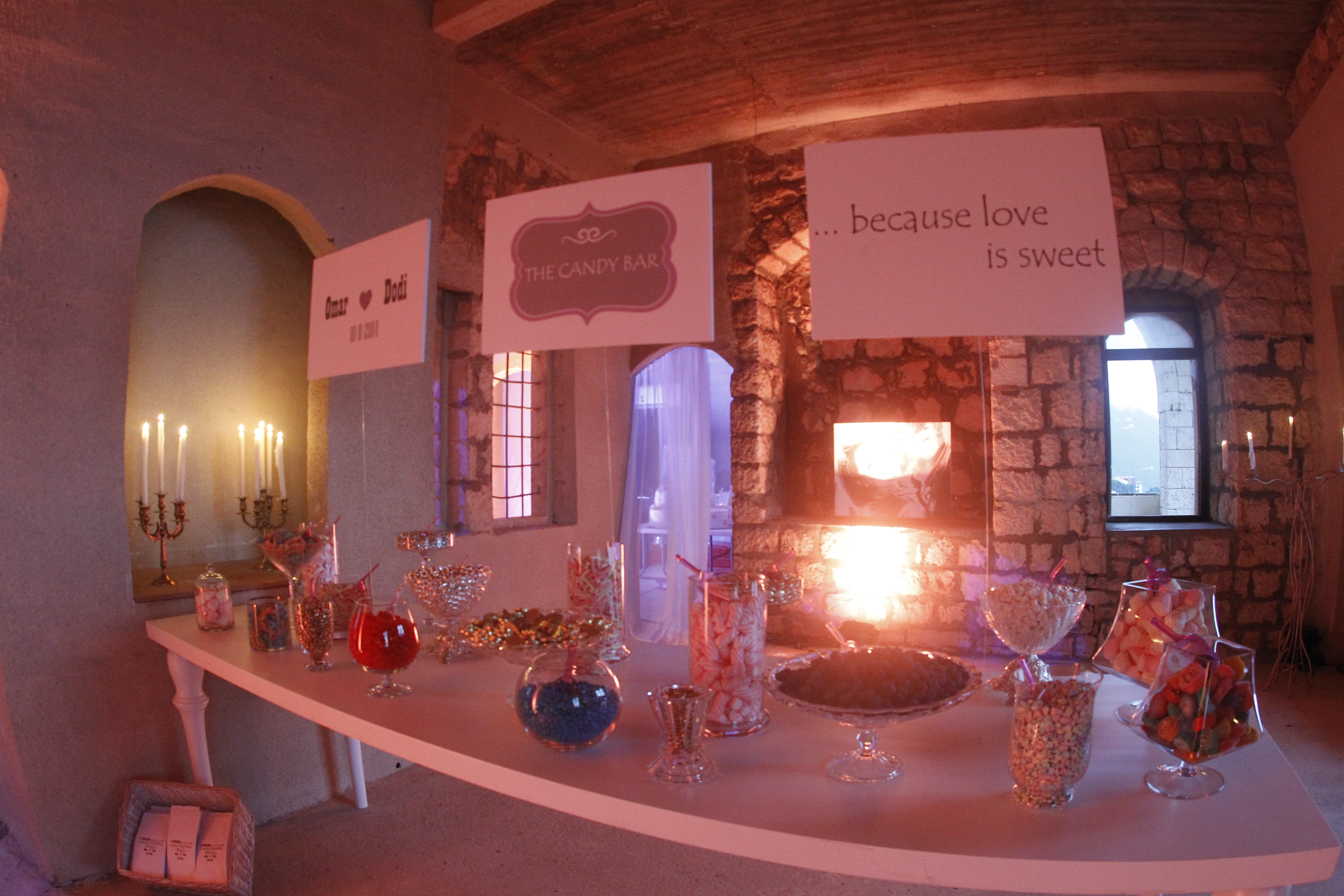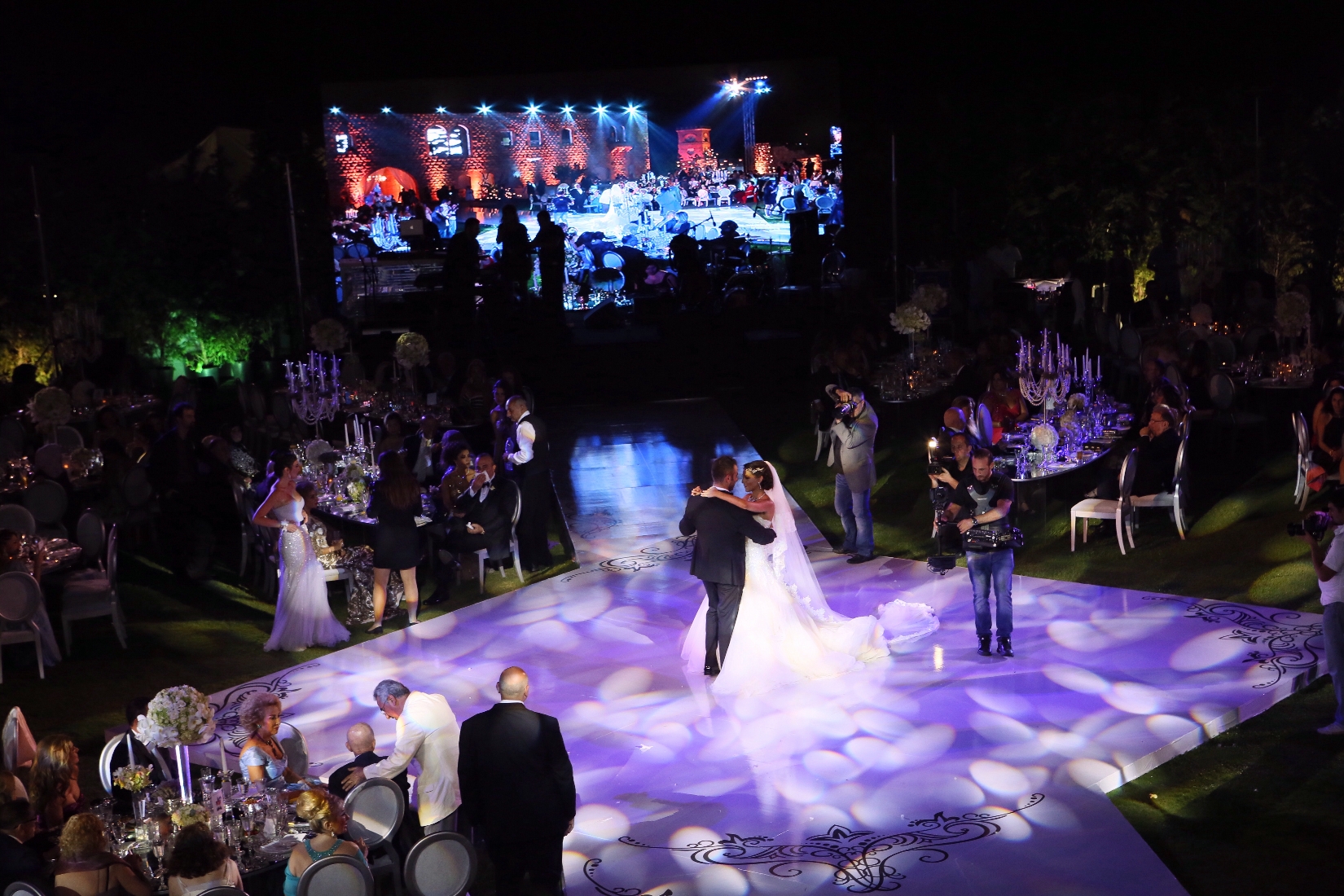 Vintage meets modern is the customized theme on which I built all the wedding details. Chateau Musar was a beautiful empty castle and every single detail and idea of this magical night was personalized and built from scratch. I had the honour of working with the amazing and professional team at Paul Nasr, which also made the several months of wedding planning overseas much easier. I am a very detail oriented person and every corner and every bit of that day was customized according to me and my husband’s personalities. The vintage character of the wedding was accentuated by violinists and a harpist playing at the reception, around a lovely decorated fountain inside the castle. From the handpicked peonies, lilies and lavender on the tables, to the pearl-adorned chandeliers and infinite candles, each of these details helped build the modern aspect of the theme. The windows of the castle, reflecting on the outdoor seating area, were equipped with beautiful large LED screens playing effects throughout the whole wedding, also bringing up the modernity in the night. The groom entered on a Tiesto song in a very non-traditional type of entrance along with a performance by the 8eme Art. The invitee tables were named after different perfumes such as “Miss Dior” and “Opium” where each one of them was given a perfume sample with the smell matching the designated table. The cake was designed by Cat and Mouth Catering and it’s an out of the ordinary wedding cake which we also called crazy cake. The twirls in the cake which were gold gave it its vintage feel but at the same time, I purposely picked to have a modern and non-traditional type of cake reflecting us as bride and groom, we had cake pops instead of regular cake bites. The candy bar was one of my favourite sections with customized candy bags for the guests to take away. Other entertainment details included Dj Nadim, Manal Mallet, Albert and Joe Achkar. Guests were invited to light up the sparkles at the cake cutting on Sky Full of Stars by Coldplay. Hubby and I also surprised the guests with a dance on Avicii’s Addicted to you.