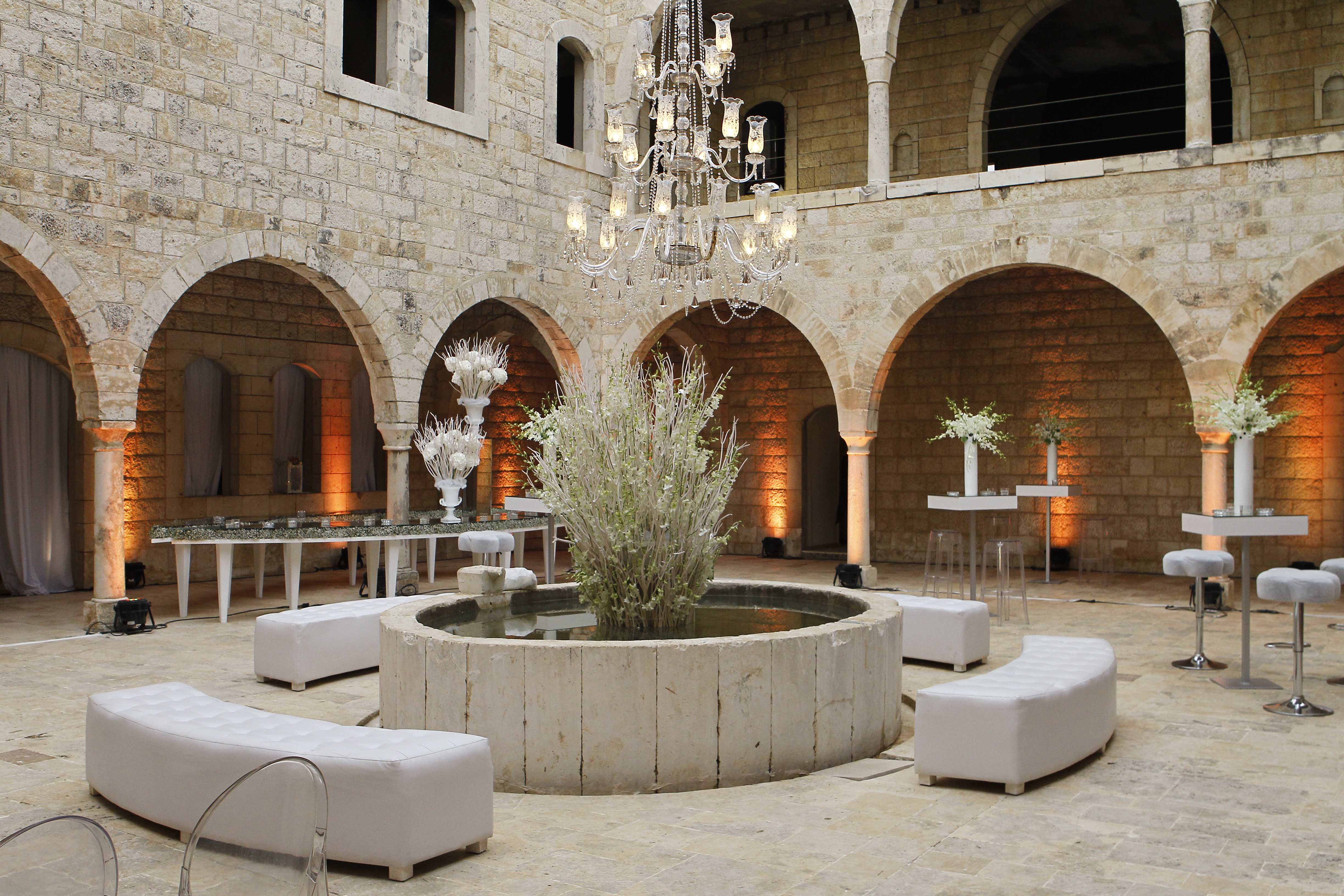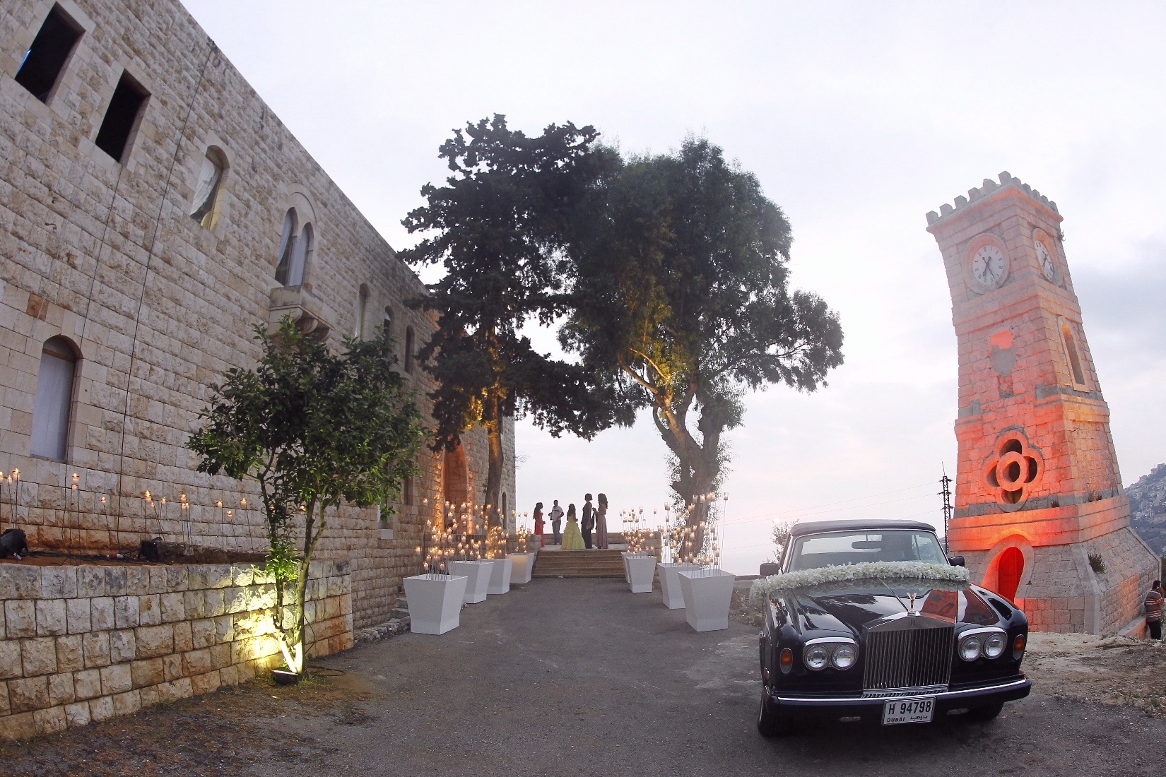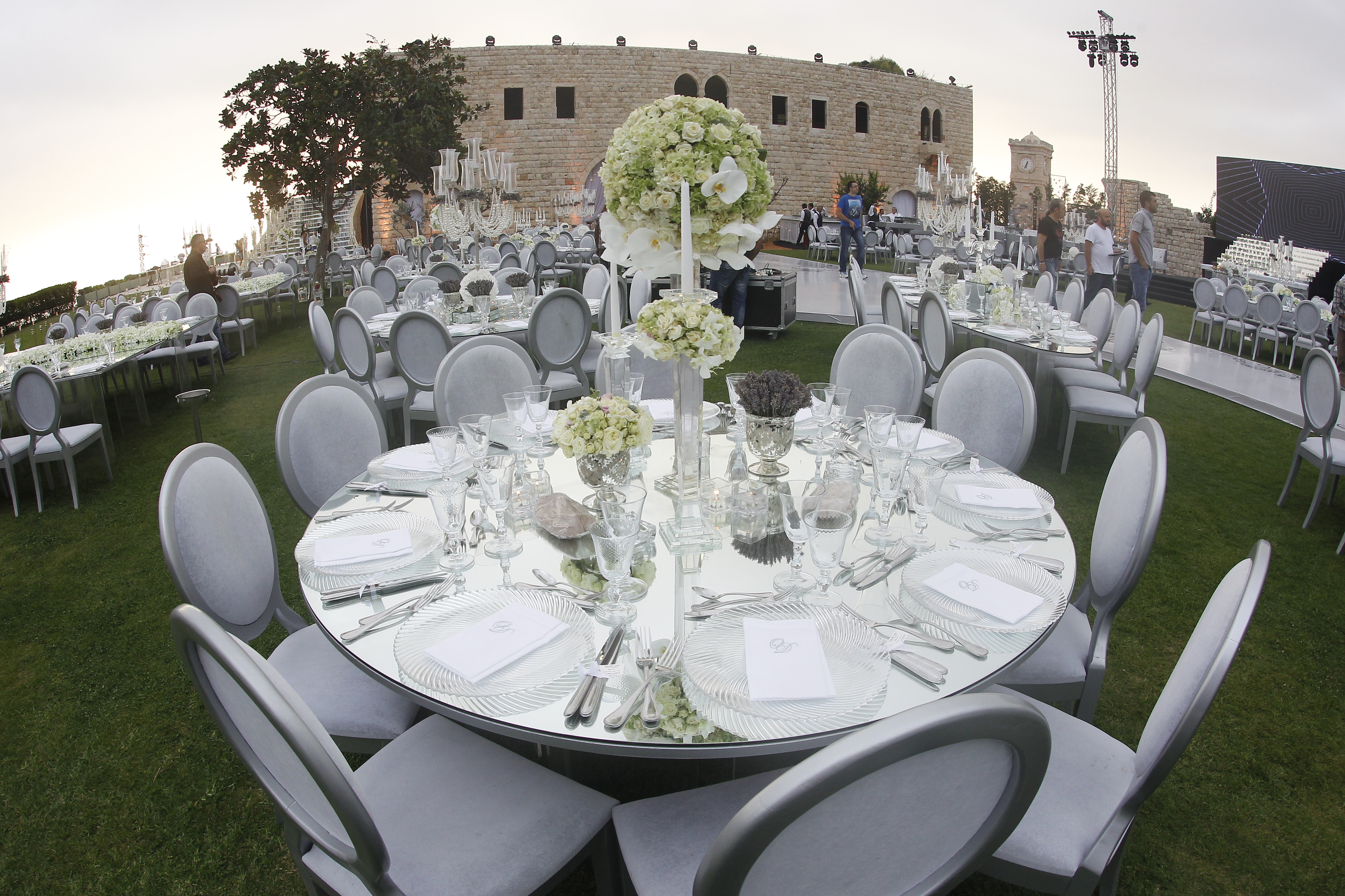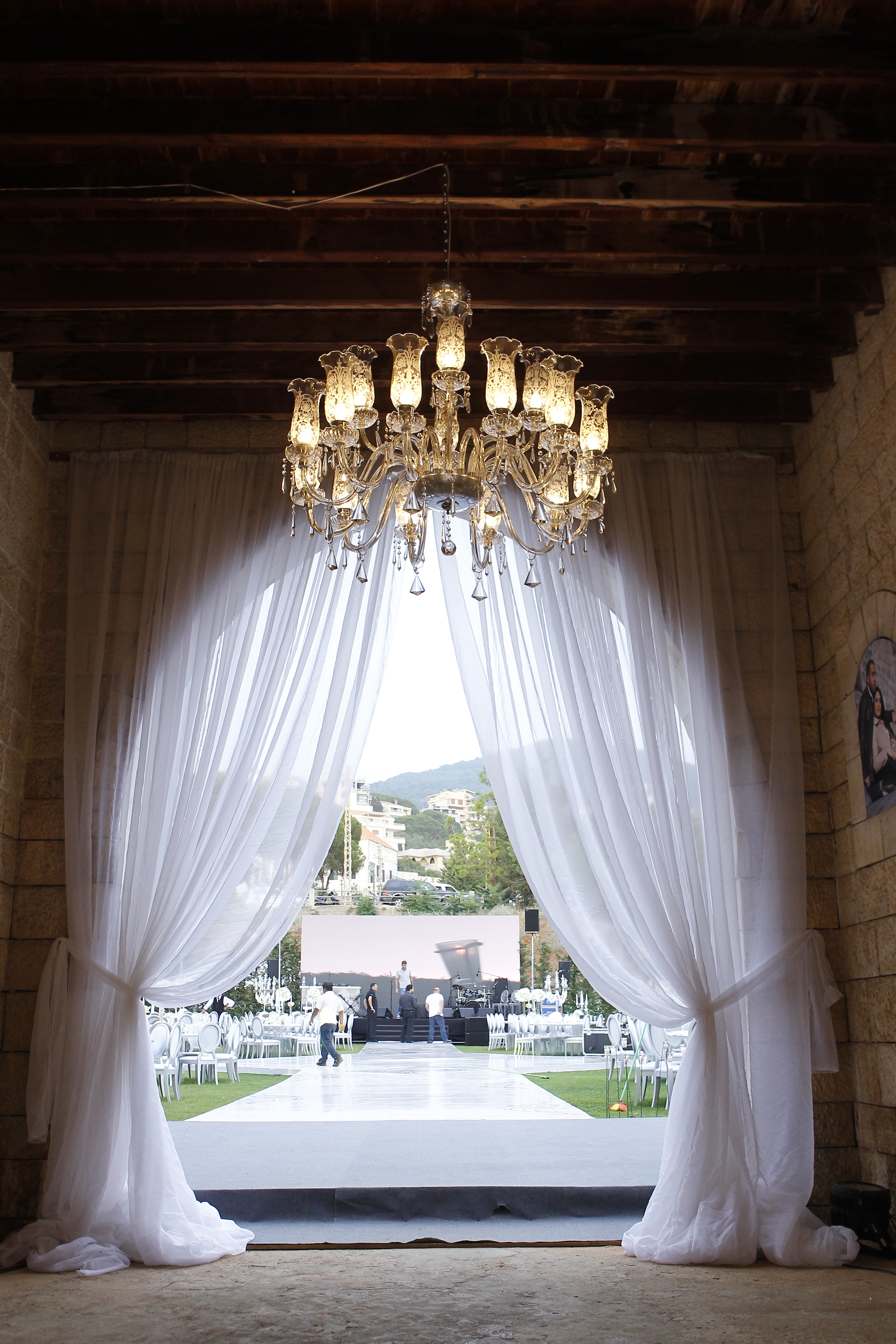 Vintage meets modern is the customized theme on which I built all the wedding details. Chateau Musar was a beautiful empty castle and every single detail and idea of this magical night was personalized and built from scratch. I had the honour of working with the amazing and professional team at Paul Nasr, which also made the several months of wedding planning overseas much easier. I am a very detail oriented person and every corner and every bit of that day was customized according to me and my husband’s personalities. The vintage character of the wedding was accentuated by violinists and a harpist playing at the reception, around a lovely decorated fountain inside the castle. From the handpicked peonies, lilies and lavender on the tables, to the pearl-adorned chandeliers and infinite candles, each of these details helped build the modern aspect of the theme. The windows of the castle, reflecting on the outdoor seating area, were equipped with beautiful large LED screens playing effects throughout the whole wedding, also bringing up the modernity in the night. The groom entered on a Tiesto song in a very non-traditional type of entrance along with a performance by the 8eme Art. The invitee tables were named after different perfumes such as “Miss Dior” and “Opium” where each one of them was given a perfume sample with the smell matching the designated table. The cake was designed by Cat and Mouth Catering and it’s an out of the ordinary wedding cake which we also called crazy cake. The twirls in the cake which were gold gave it its vintage feel but at the same time, I purposely picked to have a modern and non-traditional type of cake reflecting us as bride and groom, we had cake pops instead of regular cake bites. The candy bar was one of my favourite sections with customized candy bags for the guests to take away. Other entertainment details included Dj Nadim, Manal Mallet, Albert and Joe Achkar. Guests were invited to light up the sparkles at the cake cutting on Sky Full of Stars by Coldplay. Hubby and I also surprised the guests with a dance on Avicii’s Addicted to you.