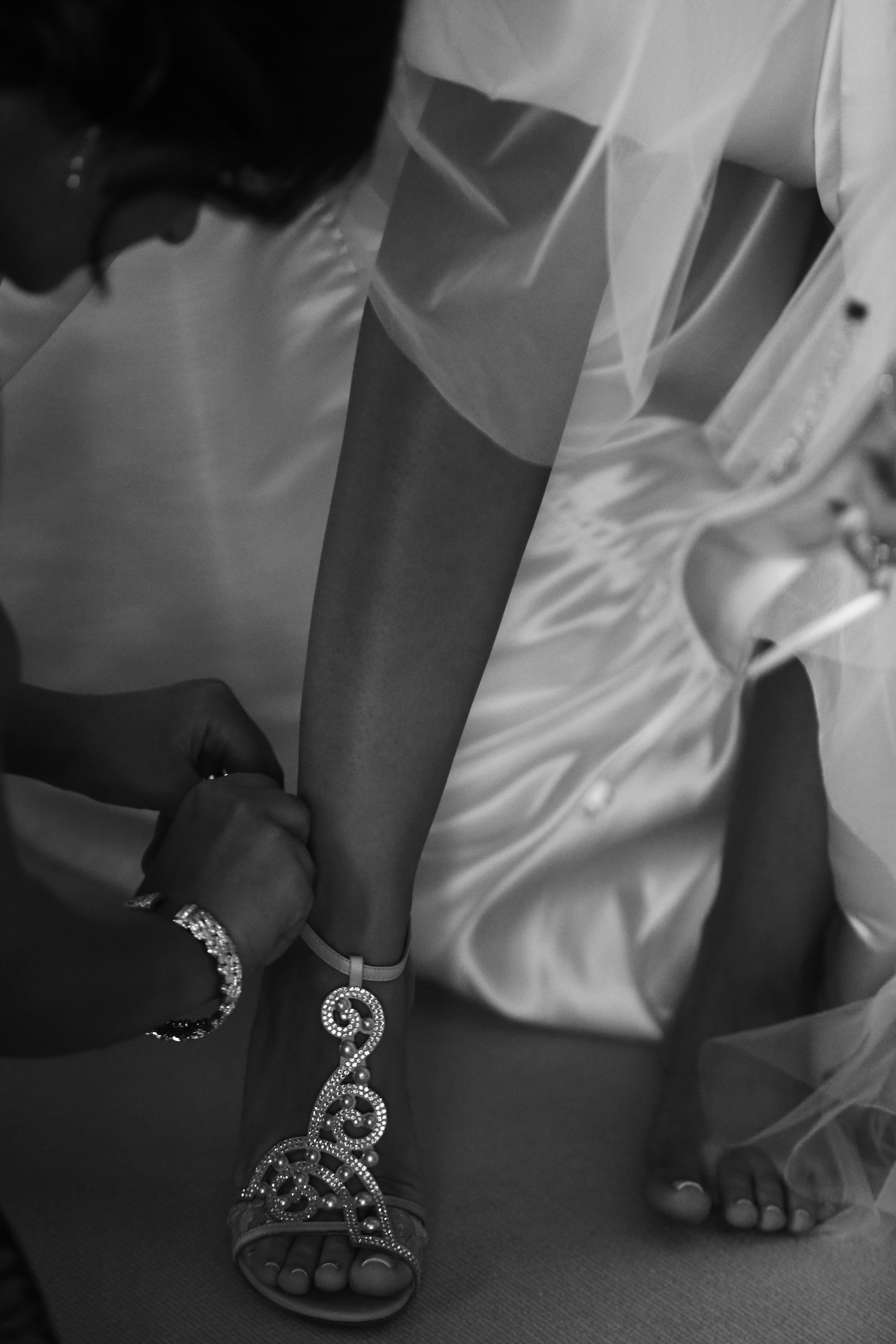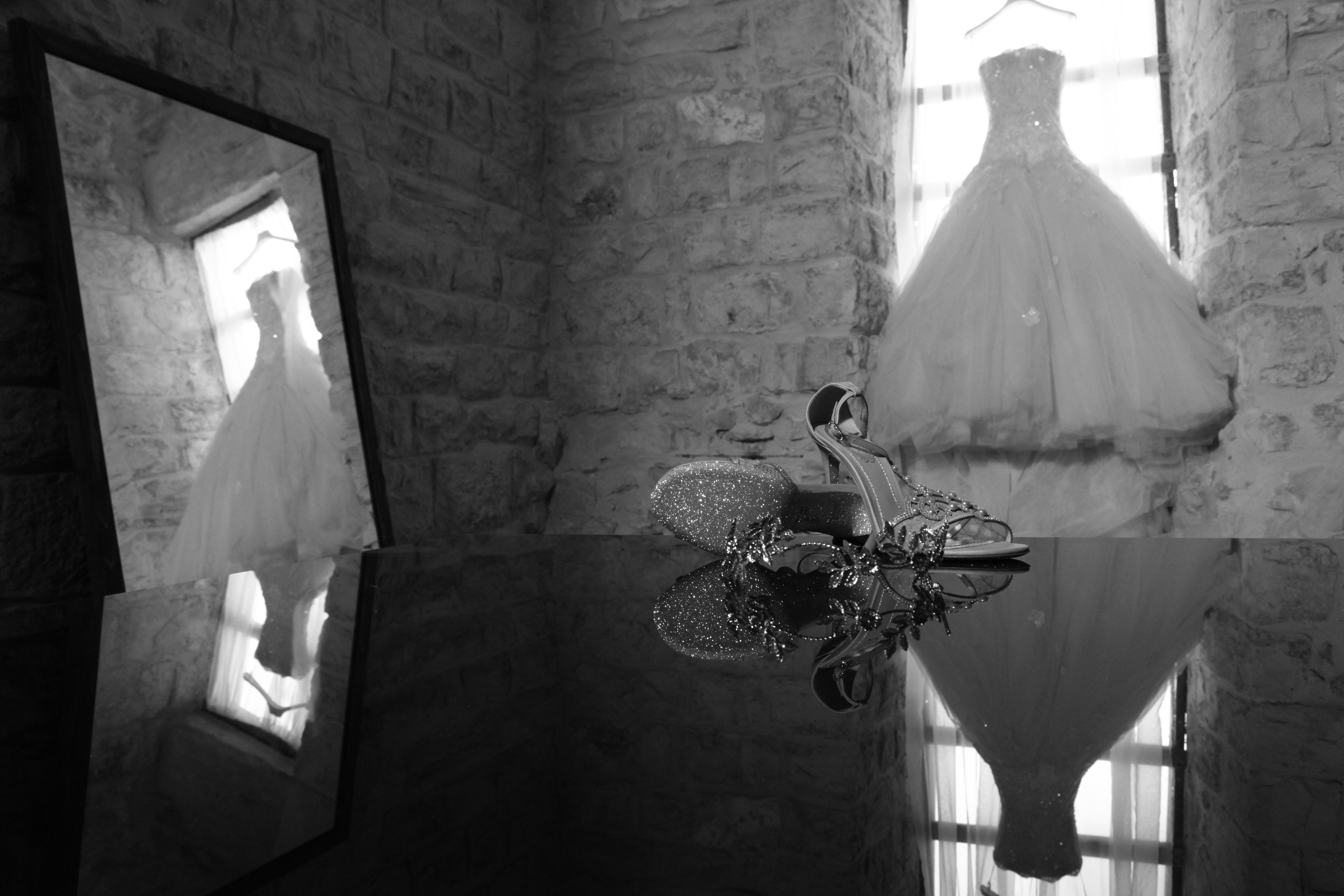 My wedding dress was designed by Zuhair Murad. I chose an A-type cut which I found perfectly comfortable and unique. The dress was designed with lace, sequins and pearls all along. I am a fan of details, which was reflected on the top part of the dress. The golden crown I wore was also from Zuhair Murad and it was from his previous season with the leaf theme and it was adorned with Swarovski crystals all along. The shoes were René Caovilla. I found them in Toronto a couple of month before the wedding and thought they would go perfectly with the dress. They are so elegant and their shiny bottom makes them perfect for this day. My hair and makeup were done by the very talented Milad Hannoun and his team, who flew in from Syria the day before just for this special occasion and who gave me this elegant yet modern up-do.