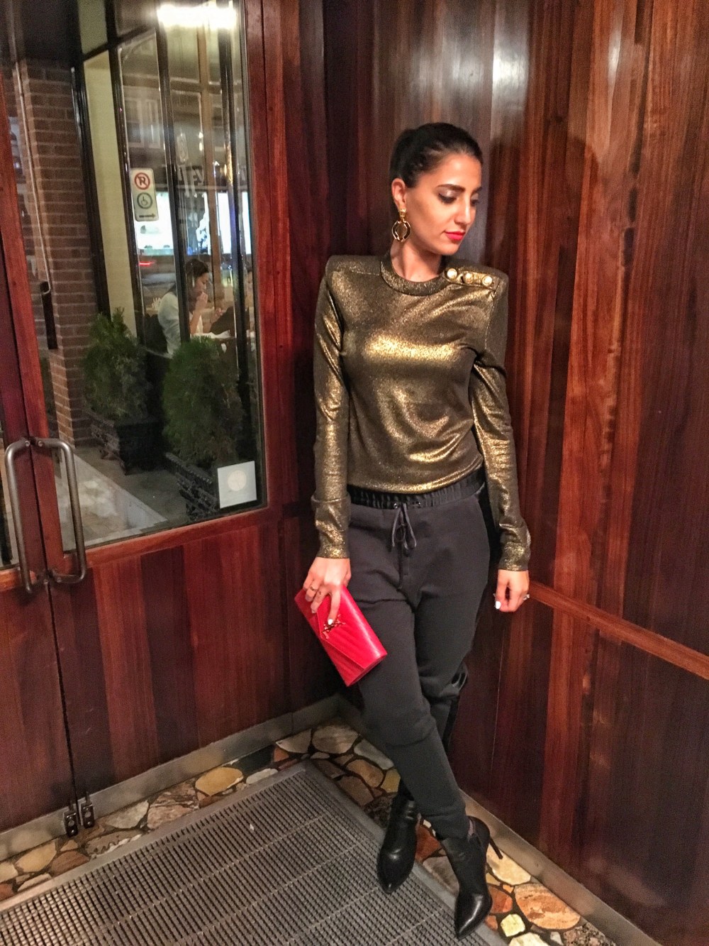 I was absolutely in love with this jumper ever since the balmainxhm collection was out on the runway. With its statement buttons and shoulder pads I matched the jumper with Phillip Lim lounge pants with silk detailing, Vince booties and a YSL chevron WOC.