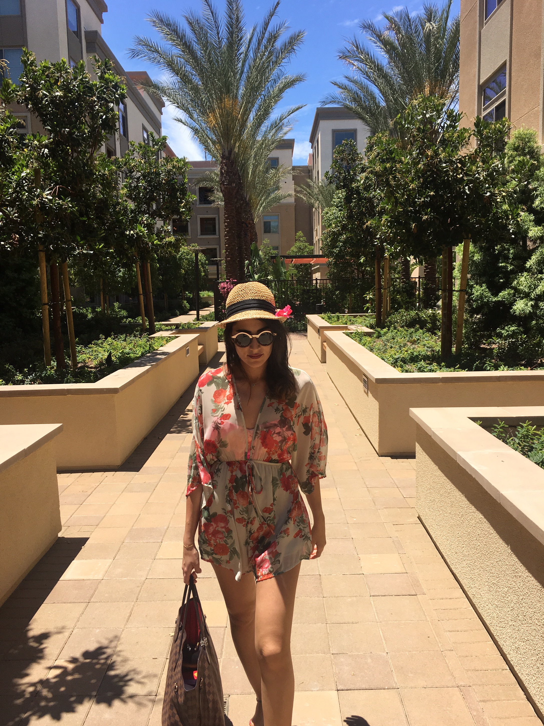 I am dressed in a casual chic full on prints romper from Audrey3plus1.