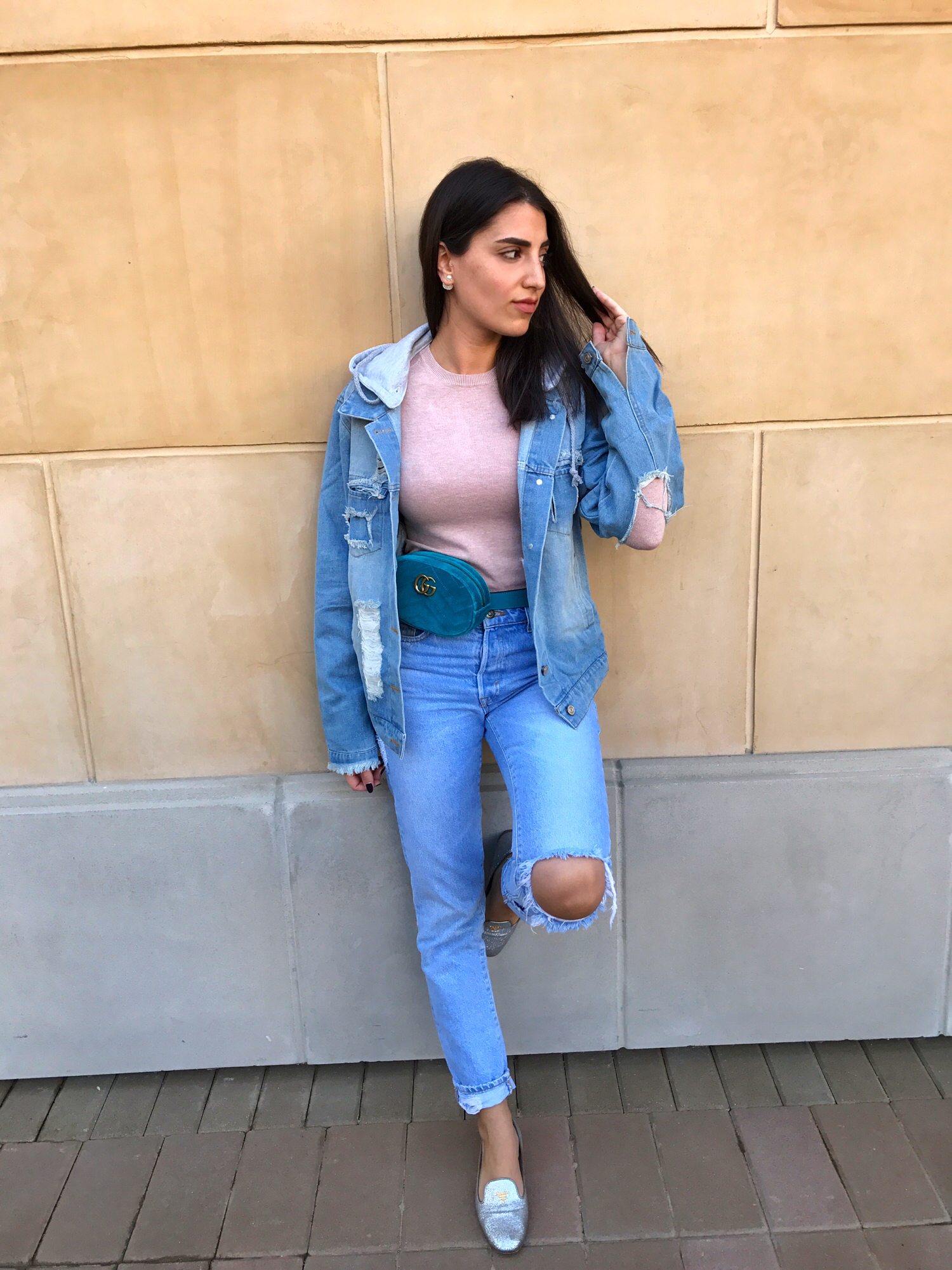 Statement jackets are always the perfect piece to make an outfit complete. What better way to represent the City of Angels than with this oversized wings embroidered denim jacket. The detachable hoodie, ripped detailing and zipper sleeve are what makes this SheIn jacket so unique: Catch me if you can..